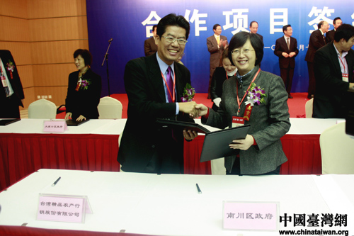 合作項目簽約儀式上渝臺雙方代表現場簽約。(中國臺灣網 程軼文攝)