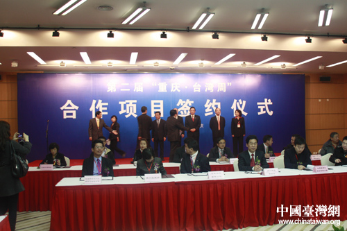 合作項目簽約儀式上渝臺雙方代表現場簽約。(中國臺灣網 程軼文攝)