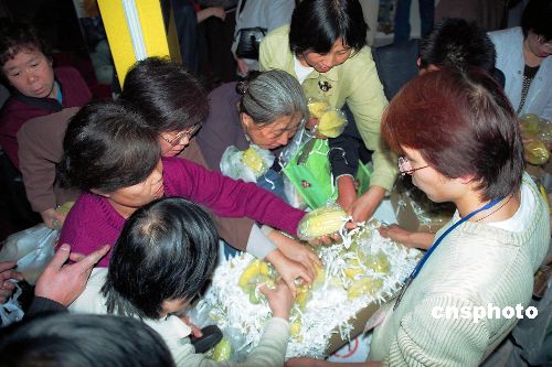 資料圖:臺灣的揚桃、橘子以及菠蘿尤其得到大陸民眾的青睞,許多市民一大早趕來搶購。 中新社發 夏世焱 攝
