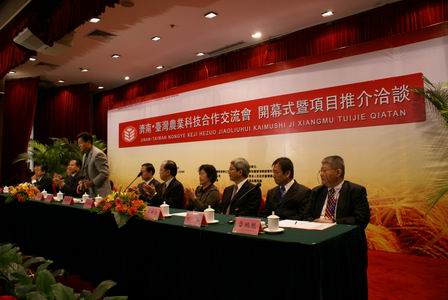論壇舉行前,濟南市科協組織部分農村科學技術協會和鄉、鎮農技協及養殖大戶參加了濟南·臺灣農業科技合作交流會項目洽談。會上,共有來自9個縣(市)區的16個涉及蔬菜、農副產品、果樹、養雞、苗木花圃、草莓、葡萄、核桃、觀光農業等的農技協組織參加了項目洽談,就規劃休閑觀光農場、促成兩地蔬菜果品苗木等引進開發達成了7項合作意向。(濟科)