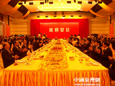 兩岸農業合作成果展介會歡迎宴會在廈門舉行,兩岸八百人出席歡迎晚宴,吳儀連戰分別致詞