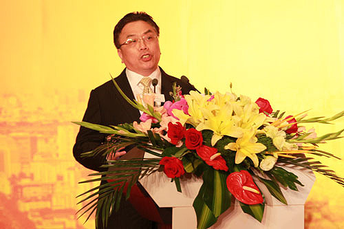 中國臺灣網5月31日北京消息 北京臺資企業協會成立二十周年慶典活動暨京臺經濟合作高端論壇31日在京舉行,圖為全國臺企聯會長郭山輝在慶典上致辭。(中國臺灣網 趙輝 攝)