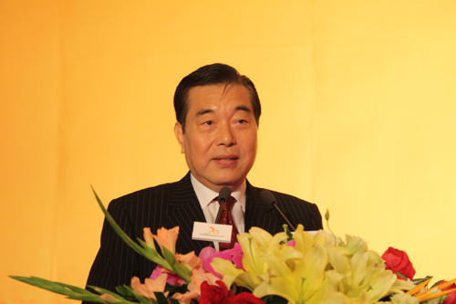 中國臺灣網5月31日北京消息 北京臺資企業協會成立二十周年慶典活動暨京臺經濟合作高端論壇31日在京舉行,圖為臺北世貿中心董事長王志剛在京臺經濟合作高端論壇上演講。(中國臺灣網 趙輝 攝)