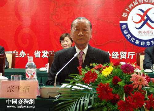 中國臺灣網9月27日濰坊消息 作為“第十四屆魯臺經貿洽談會”的亮點活動之一,“魯臺現代服務業對接洽談會”于昨天下午在濰坊舉行。山東省發改委副主任閆作溪、臺灣新黨主席郁慕明、臺灣商業總會理事長張平沼等出席洽談會并致辭。