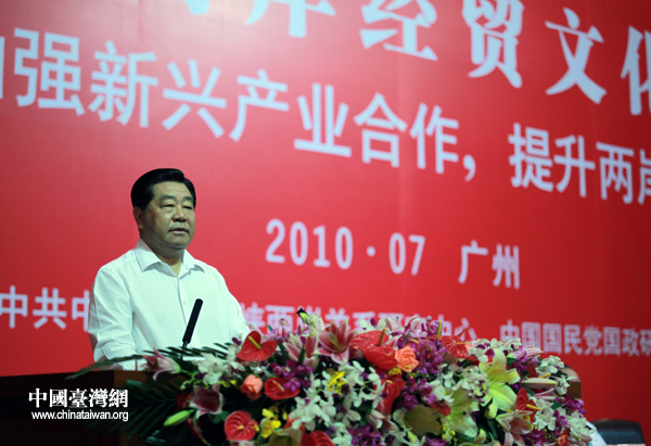 7月11日下午,第六屆兩岸經(jīng)貿(mào)文化論壇在廣州閉幕。中共中央政治局常委、全國(guó)政協(xié)主席賈慶林在論壇閉幕式上講話。(中國(guó)臺(tái)灣網(wǎng) 鐘寶華 攝)