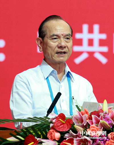 第六屆兩岸經貿文化論壇7月10日在廣州開幕,中國國民黨副主席林豐正致開幕詞。(中國臺灣網 鐘寶華 攝)