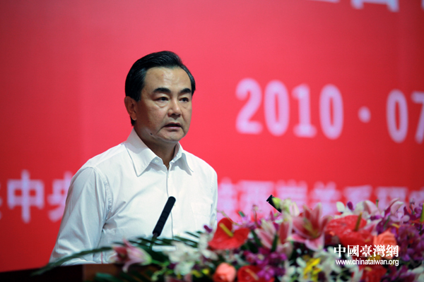 7月11日下午,第六屆兩岸經貿文化論壇在廣州閉幕,中國國民黨副主席蔣孝嚴和中共中央臺辦主任王毅共同主持閉幕式。圖為中共中央臺辦主任王毅在閉幕式上對本屆論壇進行小結。(中國臺灣網 鐘寶華 攝)
