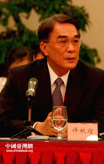 中國國民黨國政研究基金會特邀嘉賓許秋煌表示,大陸擁有龐大的華語市場,對于娛樂休閑的需求及消費隨之增加。臺灣在娛樂及流行文化產業上具有敏銳的嗅覺和豐富的產制經驗,兩岸在產品和市場上呈現互補交流。(中國臺灣網 高斯斯 攝)