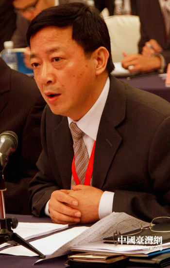 中共中央臺辦交流局局長程金中在“兩岸文教合作與青年交流”的研討中表示,“新形勢下的兩岸文化教育交流與合作理應向更寬領域、更大規模、更深層次邁進。”(中國臺灣網 高斯斯 攝)