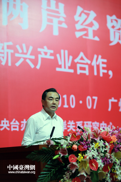 7月11日下午,第六屆兩岸經貿文化論壇在廣州閉幕,中國國民黨副主席蔣孝嚴和中共中央臺辦主任王毅共同主持閉幕式。圖為中共中央臺辦主任王毅在閉幕式上對本屆論壇進行小結。(中國臺灣網 鐘寶華 攝)