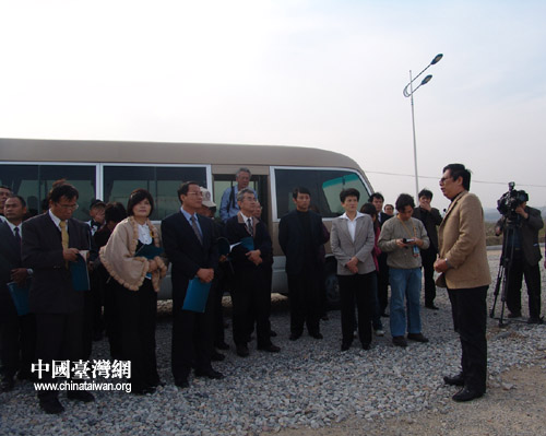 中國(guó)臺(tái)灣網(wǎng)4月22日消息 前來(lái)參加第七屆中國(guó)(壽光)國(guó)際蔬菜科技博覽會(huì)的臺(tái)灣省各級(jí)農(nóng)會(huì)、各農(nóng)業(yè)協(xié)會(huì)、農(nóng)業(yè)企業(yè)的代表一行昨天下午到達(dá)了山東棲霞桃村經(jīng)濟(jì)開(kāi)發(fā)區(qū),并參觀了將要在此落戶(hù)的臺(tái)灣農(nóng)民創(chuàng)業(yè)園。農(nóng)業(yè)部臺(tái)灣事務(wù)辦公室副主任李永華、棲霞市市長(zhǎng)李寧及有關(guān)領(lǐng)導(dǎo)為臺(tái)灣代表介紹了棲霞市臺(tái)灣農(nóng)民創(chuàng)業(yè)園的籌建情況。