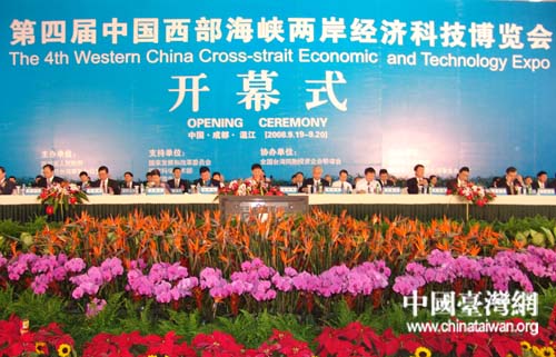 中國臺灣網9月19日成都消息 今天上午,四川省在“5·12”汶川大地震后,舉辦的第一個大規模涉臺經貿活動——第四屆中國西部海峽兩岸經濟科技博覽會(簡稱“海博會”),在成都市溫江區成都花博國際會展中心開幕。來自海峽兩岸的1500多名經貿界人士歡聚一堂,上海、深圳、東莞、蘇州等沿海主要臺商聚集區的臺資企業協會更是率當地電子、機械等行業客商組團參會。