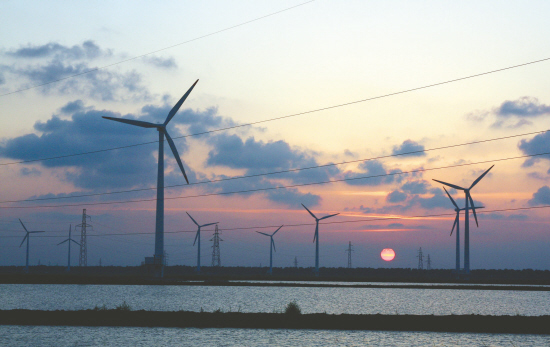 江蘇省利用沿海灘涂廣闊、風(fēng)力資源豐富的優(yōu)勢,大力發(fā)展風(fēng)力發(fā)電。根據(jù)規(guī)劃,江蘇沿海風(fēng)力發(fā)電裝機(jī)容量2010年將達(dá)到150萬千瓦。 新華社發(fā)