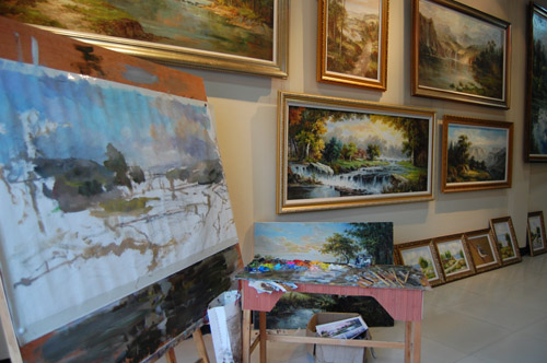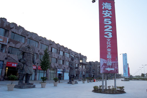 2009年,海安引進深圳大芬油畫村,建成全國第一家美術文化產業園——海安523文化產業園,目前,已有大芬村領軍人物吳瑞球等100多名畫商、藝術家入駐,并將形成原創為主的特色,一位從深圳大芬搬遷過來的年輕畫家說,生活壓力小、政府提供的便利多是他搬過來的原因,近期,他還準備把在深圳的十幾名畫工一起搬到海安來。
