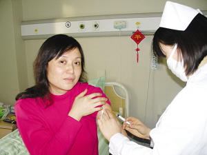 醫務人員給韓秀芳打動員劑。