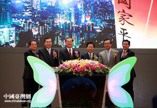 “江蘇臺(tái)灣周暨2010(南京)臺(tái)灣名品交易會(huì)開幕式”今天上午在南京國(guó)際博覽中心舉行。江蘇省委書記梁保華,中共中央臺(tái)辦、國(guó)務(wù)院臺(tái)辦主任王毅,中國(guó)國(guó)民黨榮譽(yù)主席連戰(zhàn)等共同按下啟動(dòng)按鈕,啟動(dòng)2010“江蘇臺(tái)灣周”。(中國(guó)臺(tái)灣網(wǎng) 鐘寶華 攝)