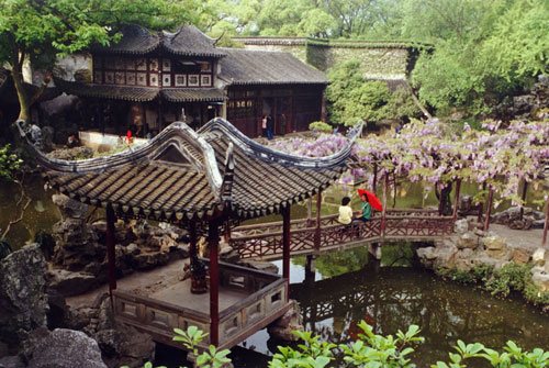 自開放以來,留園在管理部門的不斷修繕 和保護下,其藝術風貌始終如故,魅力無窮。1997年12月,經國家有關部門審查推薦,留園與拙政園、網師園、環秀山莊作為蘇州古典園林典型例證,經聯合國教科文組織最后審定,被批準列入世界文化遺產名錄。留園現有面積30余畝,集住宅、祠堂、家庵、庭院于一體,是蘇州大型古典園林之一,代表了清代風格。留園的建筑綜合運用了江南造園藝術,以建筑結構見長,善于運用大小、曲直、明暗、高低、收放等變化,組合景觀,高下布置恰到好處,營造了一組組層次豐富、錯落有致、有節奏、有色彩、有對比的空間體系。全園用建筑來劃分空間,可分中、東、西、北四個景區:中部以山水見長,池水明潔清幽,峰巒環抱,古木參天;東部以建筑為主,廳堂華麗,庭院精美,奇峰秀石,引人入勝;西、北部環境僻靜,山溪曲流,樹木蔥蘢,頗有山林野趣。