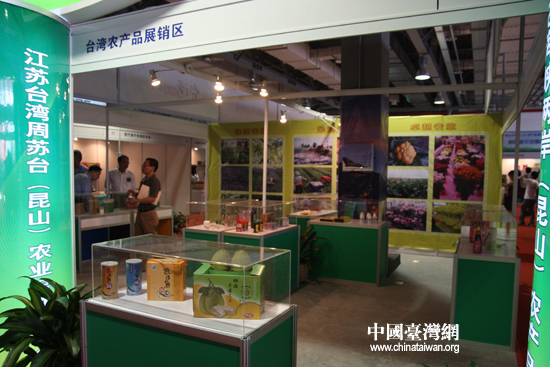 江蘇臺灣周蘇臺(昆山)農(nóng)業(yè)合作洽談會今天在昆山中國國際特許中心開幕。圖為臺灣農(nóng)產(chǎn)品展銷區(qū)。(中國臺灣網(wǎng) 張弛 攝)