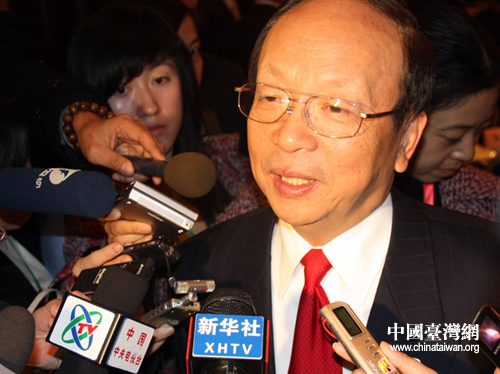 中國國民黨副主席蔣孝嚴認為“國共論壇”在推動兩岸關系取得歷史性突破方面功不可沒(張弛 攝)