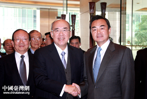 中共中央臺辦主任王毅迎接中國國民黨主席吳伯雄一行。中國臺灣網 李徽 攝