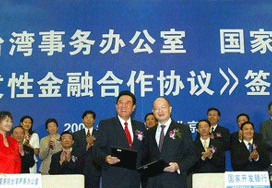 “中國臺灣網7月10日消息 今日下午,國務院臺灣事務辦公室和華夏銀行股份有限公司在人民大會堂簽署《支持臺資企業發展合作協議》,在五年期內,華夏銀行為臺資企業意向性提供總額為200億元的融資支持和多種金融服務。國務院臺辦主任陳云林、華夏銀行董事長劉海燕分別致辭,國務院臺辦主任陳云林和華夏銀行行長吳建在合作協議上簽字……”