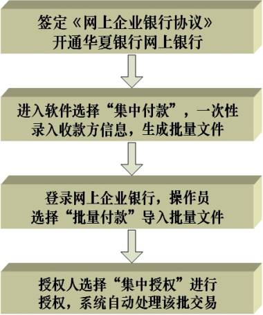 2.付款當日,客戶進入"華夏互連通"集中支付軟件選擇"集中支付",一次性錄入收款方信息,生成批量文件;