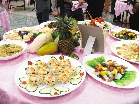 中新網11月29日電 南投縣政府以南投美食協會為聯系平臺,在縣內7大觀光軸線各推出10道地方特色名菜于28日公開,現場盤盤秀色可餐。