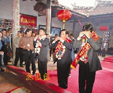 11月28日上午,福建省龍海市白礁村王氏宗祠“世饗堂”,臺灣立法院長王金平的胞兄、島內(nèi)昱慶實業(yè)股份有限公司總裁王珠慶帶著兒子王峻邦、王峻良,在這里虔誠地焚香跪拜。裊裊青煙中,高雄王姓望族終圓縈繞心中多年的大陸尋根夢。