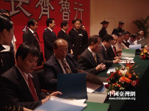 圖片說明:濰坊市臺商協會與北京、上海等九地臺商協會會長簽約