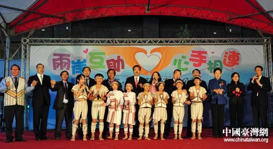 捐贈典禮上,吉林、高金素梅等與臺灣少數民族民眾齊唱《我們都是一家人》