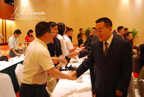 人民網(wǎng)合肥5月21日電 5月21日下午,安徽省委書記王金山在合肥親切會(huì)見了“科學(xué)發(fā)展看安徽”網(wǎng)絡(luò)媒體采訪團(tuán)一行。安徽省委常委、省委宣傳部部長(zhǎng)臧世凱,省委常委、省委秘書長(zhǎng)詹夏來(lái),副省長(zhǎng)唐承沛等領(lǐng)導(dǎo)參加了會(huì)見。