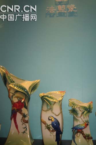 “你看,它大量運用花草鳥獸的一個方式在產品里面,你買這組產品回去,等于把大自然帶回去。還能喚起大家重視環保。尤其很多人會送這個竹子花瓶給朋友,希望他節節高升!……” 外觀精美,氣質優雅,又被賦予這么多內涵,深受海內外政商名流青睞的臺灣法藍瓷果然名不虛傳。公司品牌公關經理李建鎰說,在全球53個國家成功開拓6000多個營銷點后,公司已經在廈門設立大中華區營銷中心,發力大陸市場:“隨著經濟的起飛,人民越來越富裕的情況下,對于這種產品的需求我相信會越來越高。”