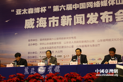 威海市召開新聞發布會向網絡媒體記者介紹威海市半島藍色經濟發展情況。(中國臺灣網 劉海偉 攝)