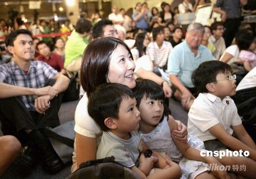 9月25日晚,香港市民在太空館觀看“神舟七號”升空直播。 中新社發(fā) 張勤 攝