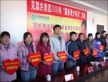 11、2007年9月啟動(dòng)“頂新朝陽獎(jiǎng)學(xué)金”資助貧困大學(xué)生。解決大學(xué)生龐大的學(xué)費(fèi)開支。