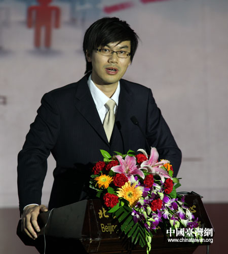 開奇網CEO潘志鵬主題演講:移動互聯網娛樂的運營平臺。(中國臺灣網 發)