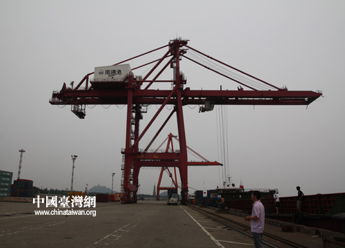 7月2日,兩岸媒體聯合采訪團來到南通港。據南通海事局6月份的統計,兩岸直航以來,抵達南通港的從事兩岸直接經貿往來船舶達到64艘次,貨物吞吐量近35萬噸。(中國臺灣網 趙靜攝)