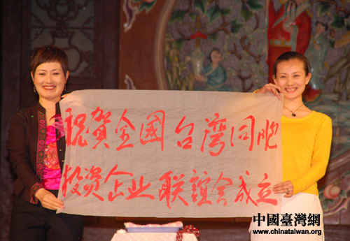 魔術師變出祝賀臺企聯成立橫幅,贏得嘉賓一片掌聲喝彩。