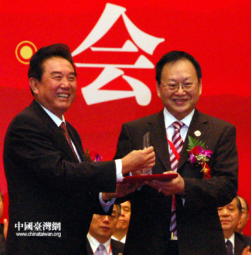 國臺辦主任陳云林為臺企聯首任會長張漢文頒發證書