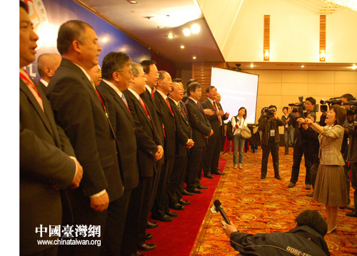 臺(tái)企聯(lián)第一屆理、監(jiān)事會(huì)成員在臺(tái)上高歌《愛(ài)拼才會(huì)贏》(攝影:田云鵬)