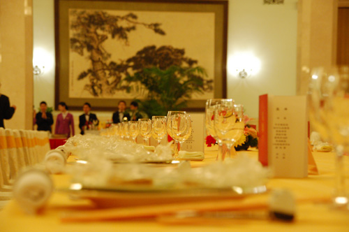 國臺辦在人民大會堂設晚宴招待出席臺企聯成立活動的全體嘉賓。(攝影:田云鵬)