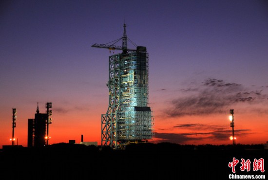 9月29日清晨,深秋時節的中國酒泉衛星發射中心載人航天發射場,“天宮一號”目標飛行器及其運載火箭――“神箭”“長征二號F”T1組合體在發射塔架一側巍峨聳立,與大自然的晨曦、朝霞、日出和大漠戈壁一起,構成一幅絕美的畫卷。按計劃,備受矚目的“天宮一號”將于9月29日21時16分至21時31分擇機發射。(孫自法 攝)