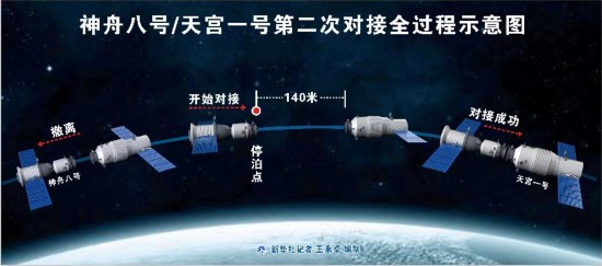 神舟八號/天宮一號第二次對接全過程示意圖(圖片來源:新華網(wǎng))