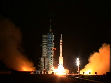 11月1日,中國在酒泉衛星發射中心用長征二號F遙八運載火箭將神舟八號飛船發射升空。新華網特派記者 李非 攝
