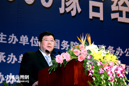 國(guó)務(wù)院臺(tái)辦副主任孫亞夫致辭表示,將重點(diǎn)推進(jìn)六項(xiàng)工作,為促進(jìn)兩岸經(jīng)濟(jì)合作做好事、辦實(shí)事(中國(guó)臺(tái)灣網(wǎng) 李徽 攝)
