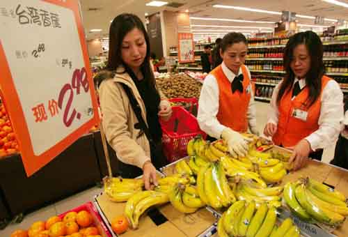 華夏經緯網訊:11月6日,祖國大陸為緩解臺灣香蕉豐產滯銷困境所采購的首批75噸香蕉在上海上市。首日供應量約合10噸,到晚間已幾乎銷售一空。 臺灣香蕉首次亮相申城超市 據新華網上海頻道裴鑫報道,11月6日,大陸緊急采購的首批75噸臺灣香蕉開始在上海本地的華聯吉買盛、世紀聯華等70多家超市銷售,這是臺灣香蕉首次在申城亮相。