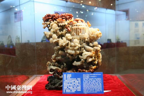 第六屆中國網絡媒體海峽西岸行大型采訪活動6月18日在福州正式啟動,來自全國各地的多家媒體下午前往中國壽山石館參訪,圖為壽山石館最重的石雕。(中國臺灣網 高大林 攝)