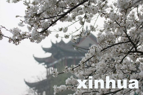 盛開的櫻花與晴川閣相映成景(3月22日)隨著氣溫轉暖,武漢的櫻花進入盛花期,吸引了眾多游人踏春賞花。李理 攝