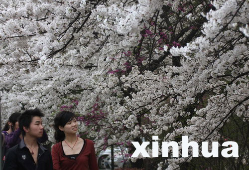 3月22日,游人在櫻花樹下賞花。李理 攝