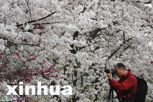 3月22日,一位攝影師在櫻花樹下拍攝櫻花。李理 攝